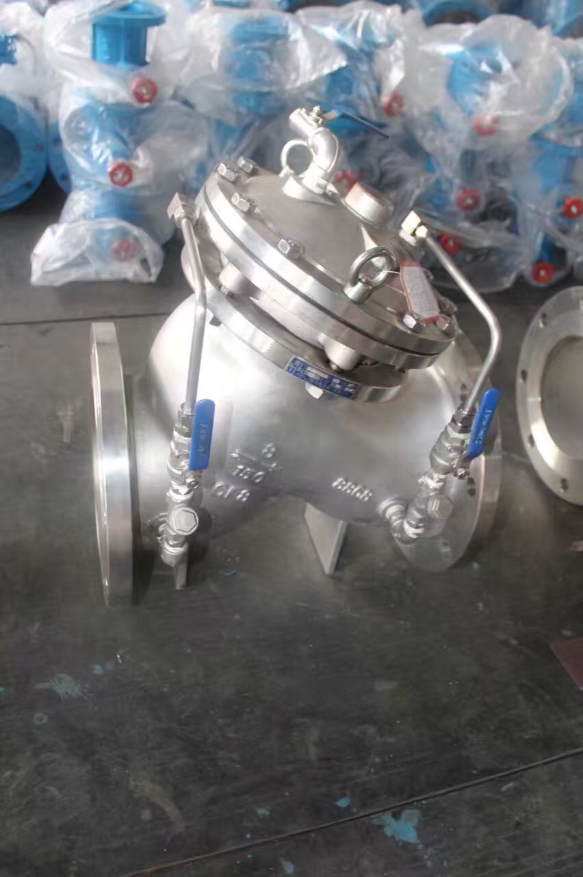 当水塔(池)的水面升高至设定高度时,浮球浮起并关闭浮球阀,控制室中的水压升高以促进主阀关闭,供水终止。池中的水位下滑,浮子阀再度打开,控制室中的水压降低,主阀再度打开以继续供水,并维持设定的液位高度。